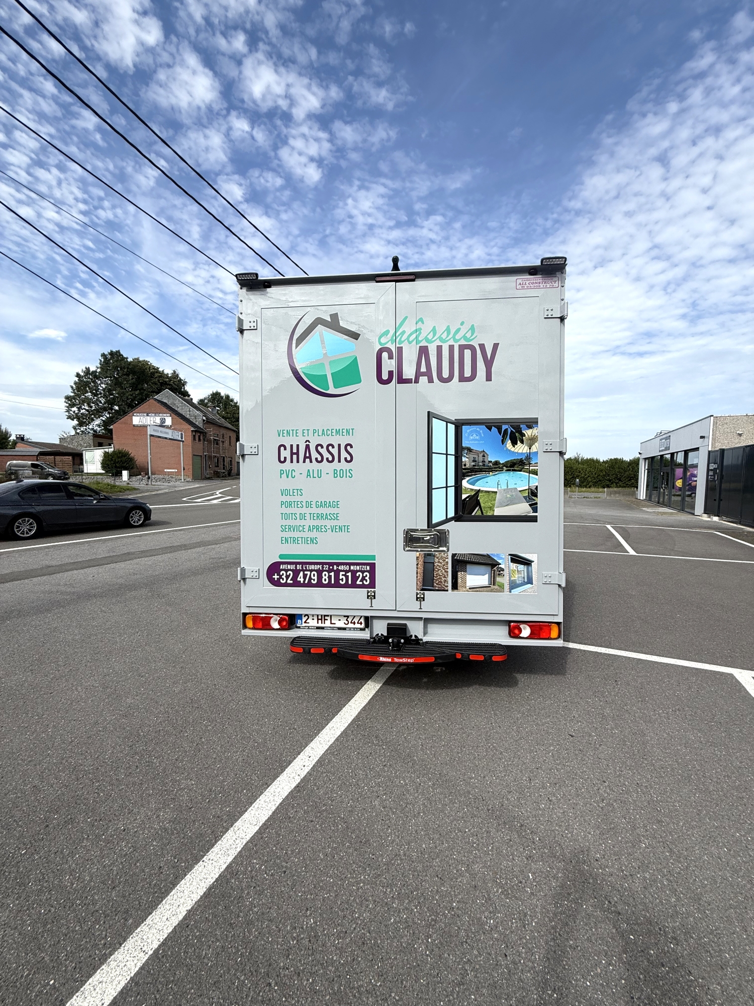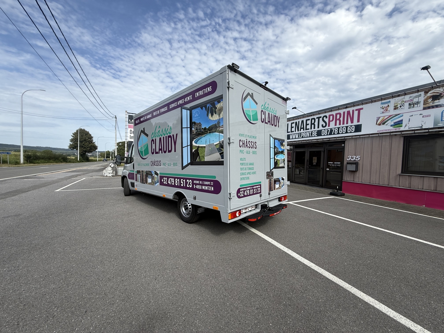 info@lprint.be TEL : 087/78.69.69Nous avons réalisé le lettrage d’un véhicule pour Châssis Claudy.